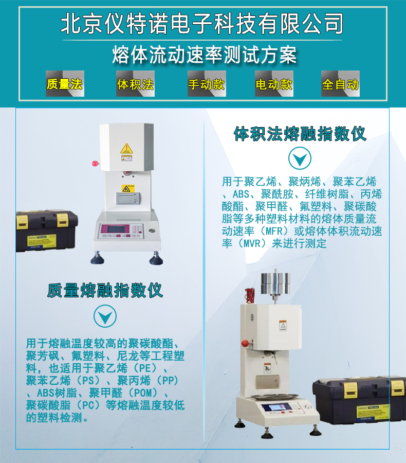 用于測(cè)定各種塑料、樹脂聚合物在粘流狀態(tài)時(shí)熔體質(zhì)量率流動(dòng)速率MFR值,既適用于熔融溫度較高的聚碳酸酯、聚芳砜、氟塑料、尼龍等工程塑料,也適用于聚乙烯(PE)、聚苯乙烯(PS)、聚丙烯(PP)、ABS樹脂、聚甲醛(POM)、聚碳酸酯(PC)樹脂等熔融溫度較低的塑料測(cè)試。