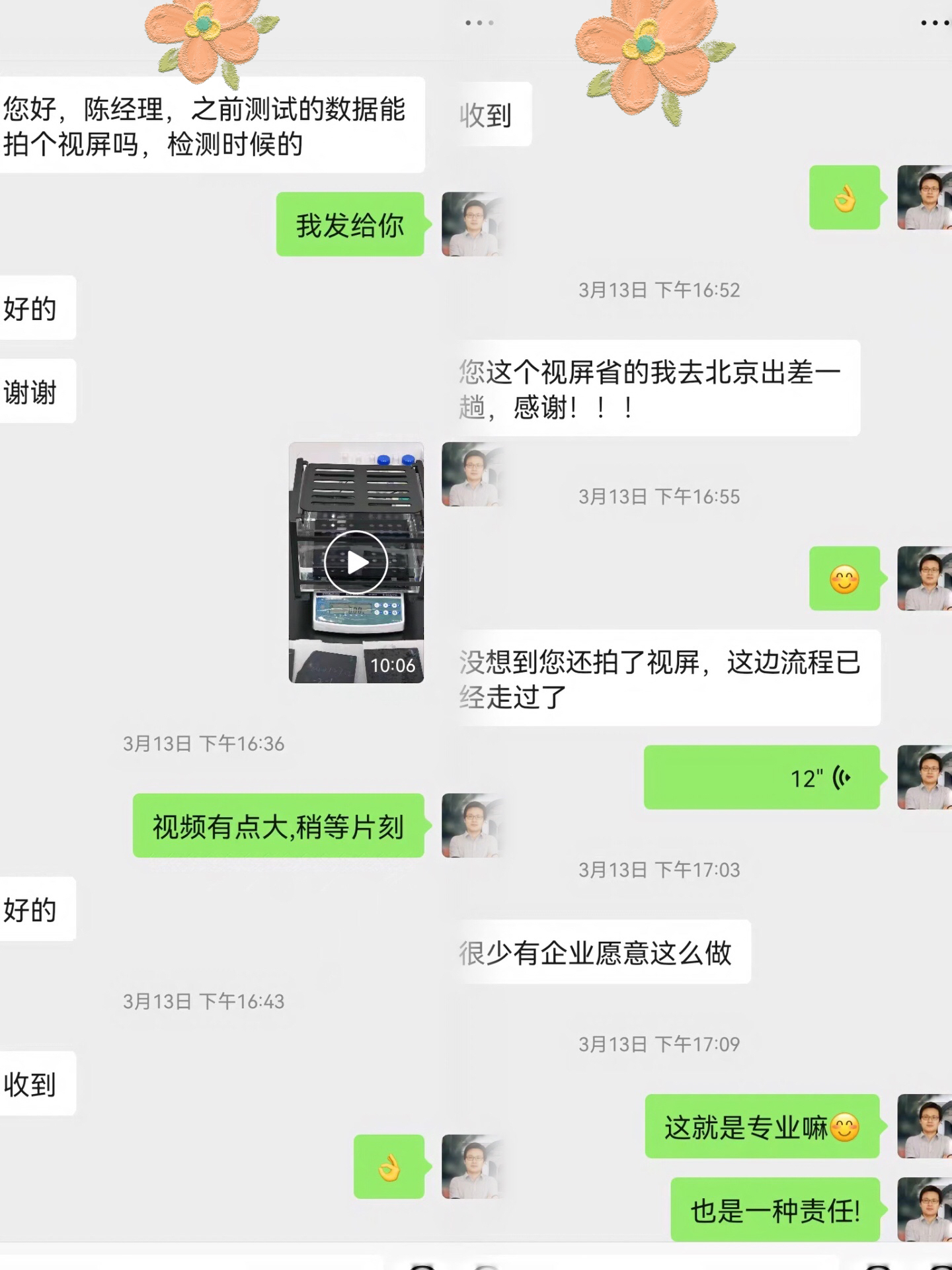 他沒想到我們會主動拍樣品測試視頻,在用戶的想法里是很少有企業(yè)會這么做的,而我們收到客戶樣品拍測量視頻,只是一個常規(guī)操作,順手而為的事情。