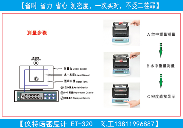 以下以儀特諾電子密度計ET-320D為例,密度測量過程解析如下: