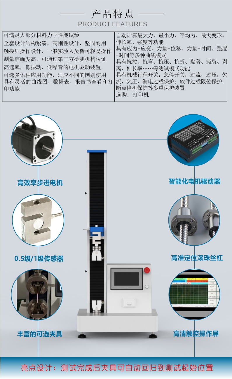 4、具有測(cè)試完成后自動(dòng)返回至測(cè)試起始的自動(dòng)歸位功能。