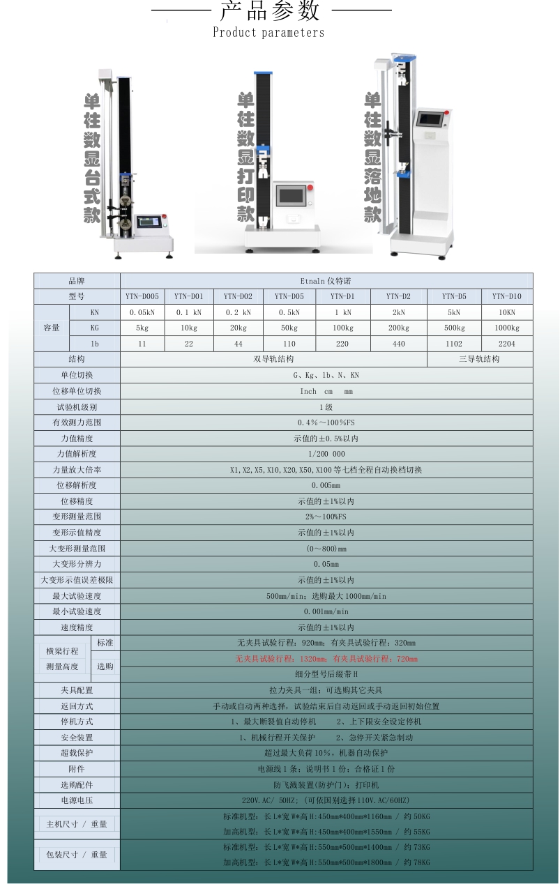 選購(gòu):無(wú)夾具試驗(yàn)行程:1320mm;有夾具試驗(yàn)行程:720mm;細(xì)分型號(hào)后綴帶H。